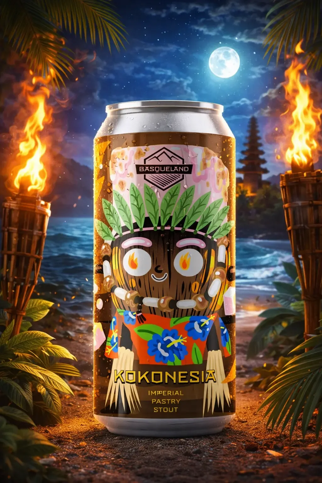 Bienvenido a Kokonesia, donde cada sorbo es un postre tropical. Elaborada con 8 maltas diferentes, esta Imperial Pastry Stout desprende aromas de cacao intenso y pan tostado, lo que le confiere cuerpo y riqueza. A esto se le añade coco tostado y malvavisco tostado cuidadosamente infusionados, que redondean la cerveza con cremosidad y una dulzura irresistible.